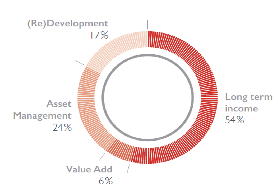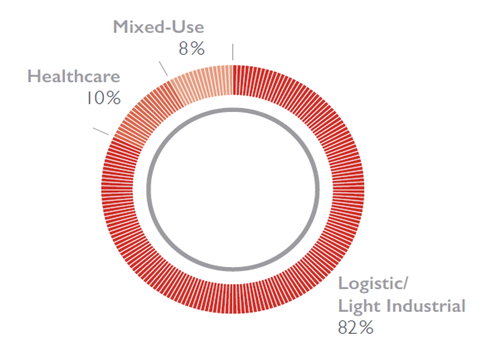 with a focus on logistics (82%) and healthcare (10%). It also considers mixed used (8%).